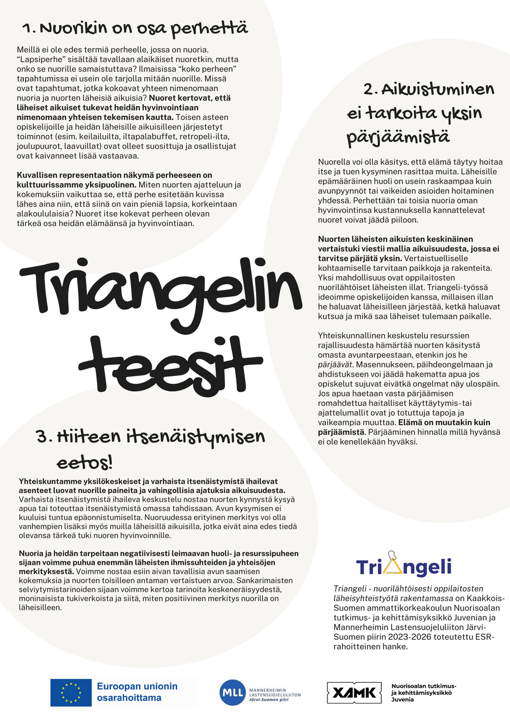 Triangelin tavoitteena on nuorten toisen asteen opiskelijoiden läheisiltään saaman ja vastaanottaman tuen lisääminen.