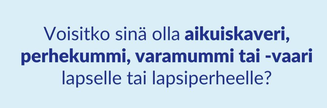 Tervetuloa mukaan MLL Järvi-Suomen piirin järjestämään aikuiskaveri- ja perhekummitoiminnan perehdytykseen Iisalmessa keskiviikkona 22.1. klo 17-19.
